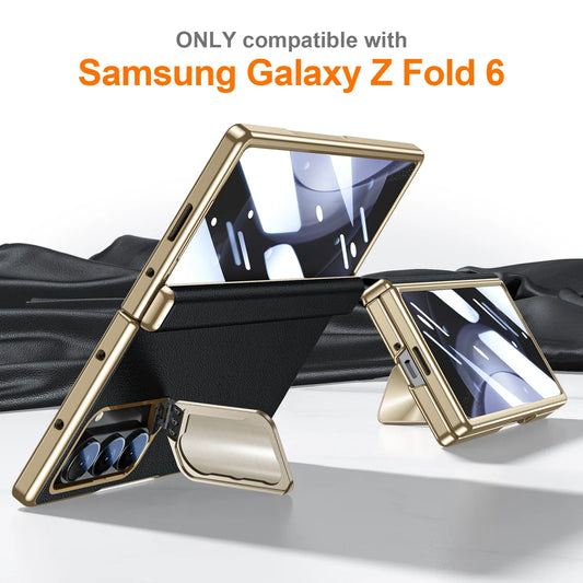 Z Fold 6 Leather Case with Camera Protection & Kickstand