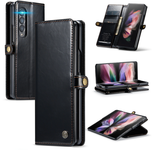 Jazz Retro Style Anti-fall Protective Leather Case - Z Fold Series