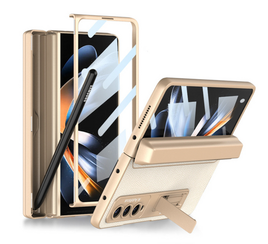 Leather Hinge Protector with Stand, Screen Film, Free Stylus for Z Fold