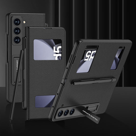 Leather Hinge Protector with Stand, Screen Film, Free Stylus for Z Fold